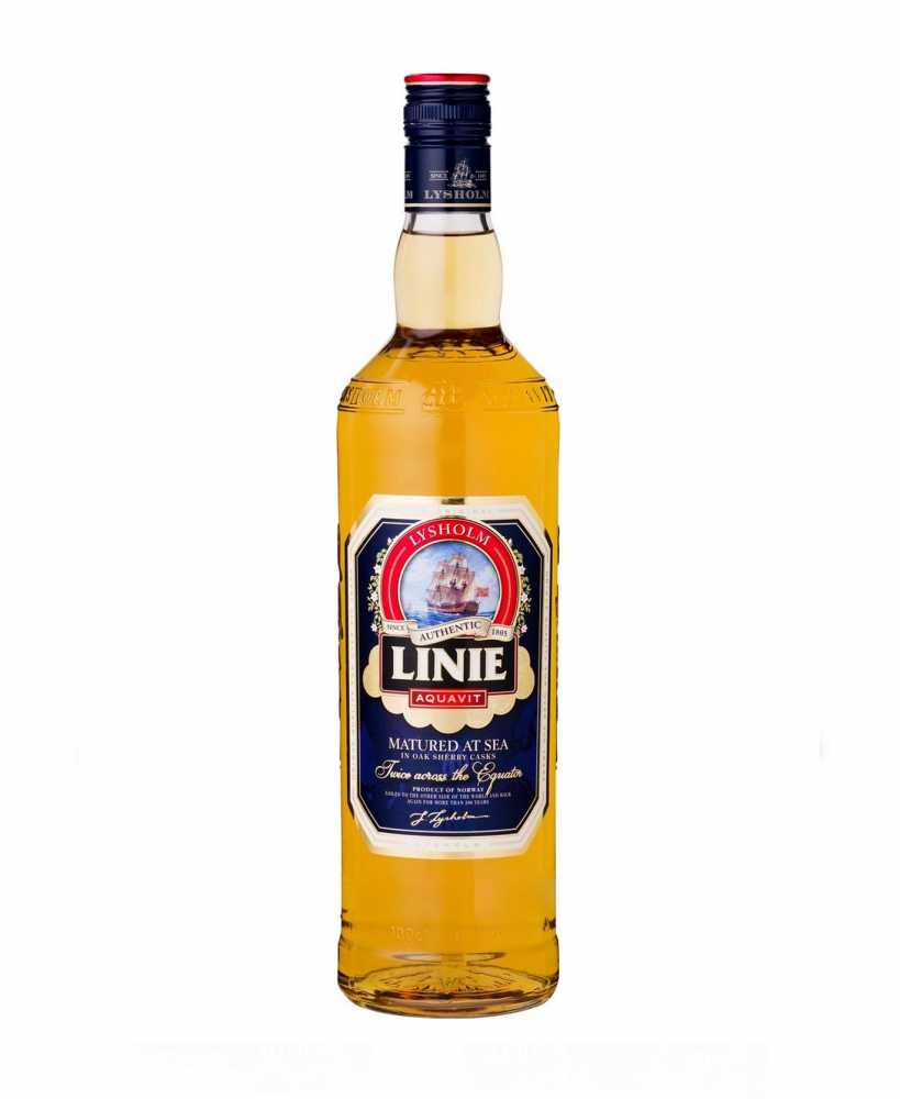 Linie est la plus ancienne marque d'Aquavit dans le monde. Sa production remonte en 1805 lorsque la famille de commerçants norvégien Lysholm envoya pour la première fois de l'Aquavit fabriquée à partir de pommes de terre vers les Indes. Personne n'en voulu, l'aquavit revint donc à son port de départ. A son arrivée en 1807, on découvrit que son voyage en mer avait eu un effet bénéfique sur son goût.