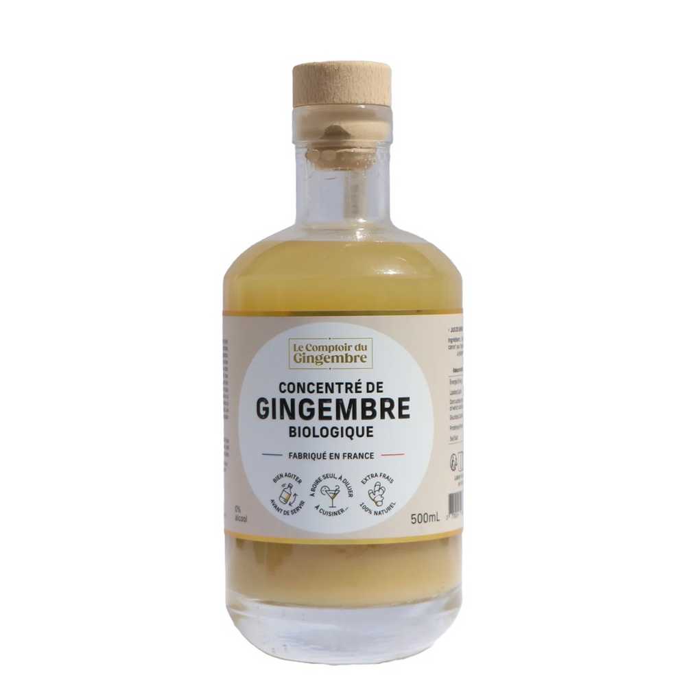 Ingrédients : jus de gingembre et jus de citron certifiés bio, sucre de canne bio.
