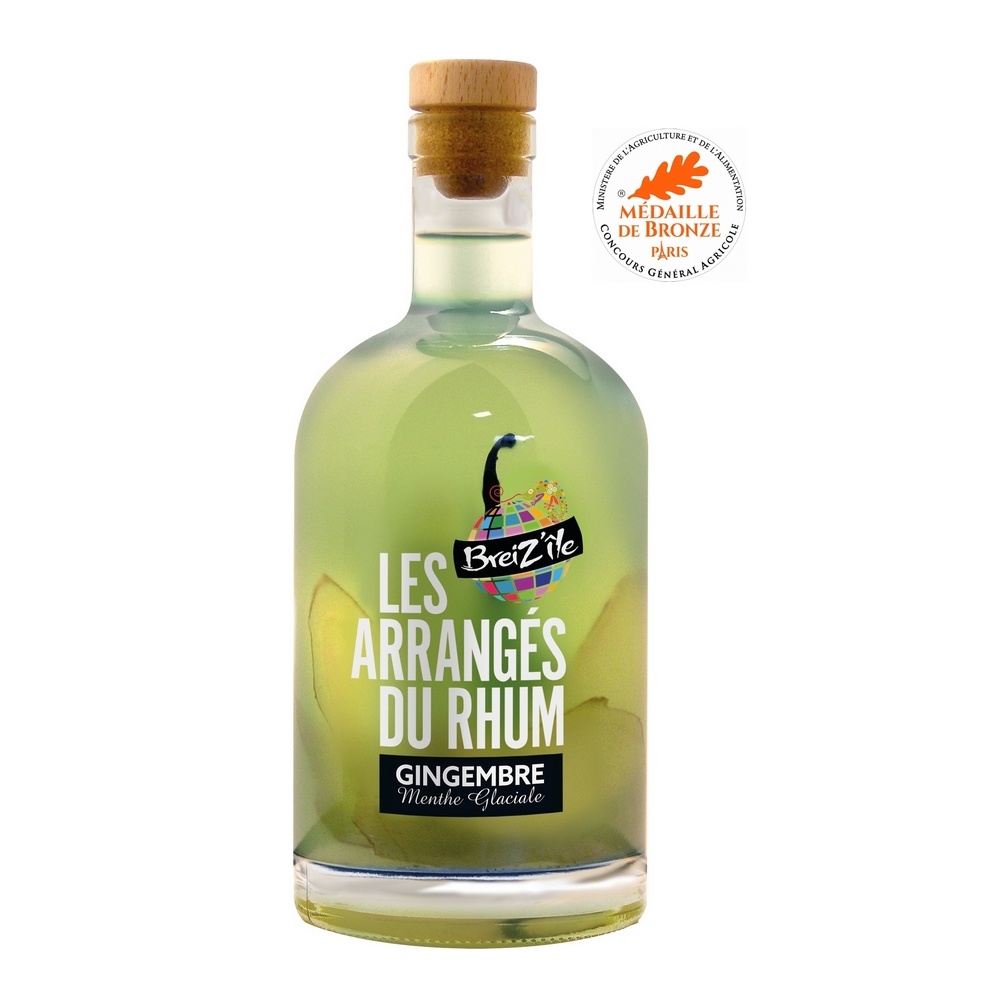 Ce rhum arrangé fabriqué de façon artisanale par la société BreiZ’île, est le résultat d’un assemblage subtil de rhum blanc agricole de Martinique, de vieux rhum de Guadeloupe, de gingembre, de menthe, d’une gousse de vanille et de sirop fait maison.