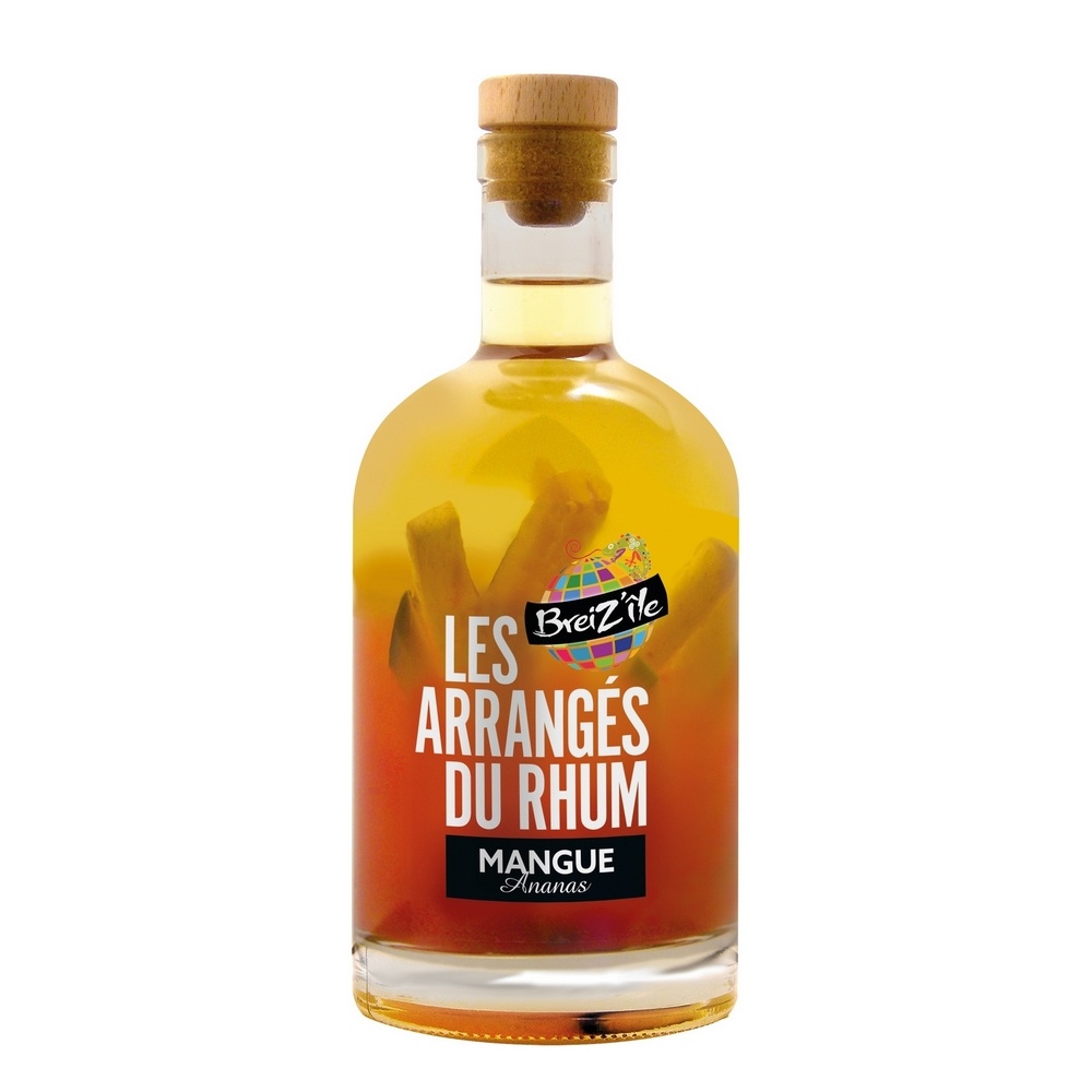Cet Arrangé du Rhum Mangue Ananas est un rhum arrangé, signé Breiz’Île élaboré de manière artisanale. C’est le résultat d’un assemblage de rhum blanc agricole de Martinique, de rhum vieux de Guadeloupe, de mangue cueillie à juste maturité et dont la pulpe restitue entièrement ses saveurs douces, sucrées et enivrantes, d’ananas, de sirop fait maison et d’une gousse de vanille.