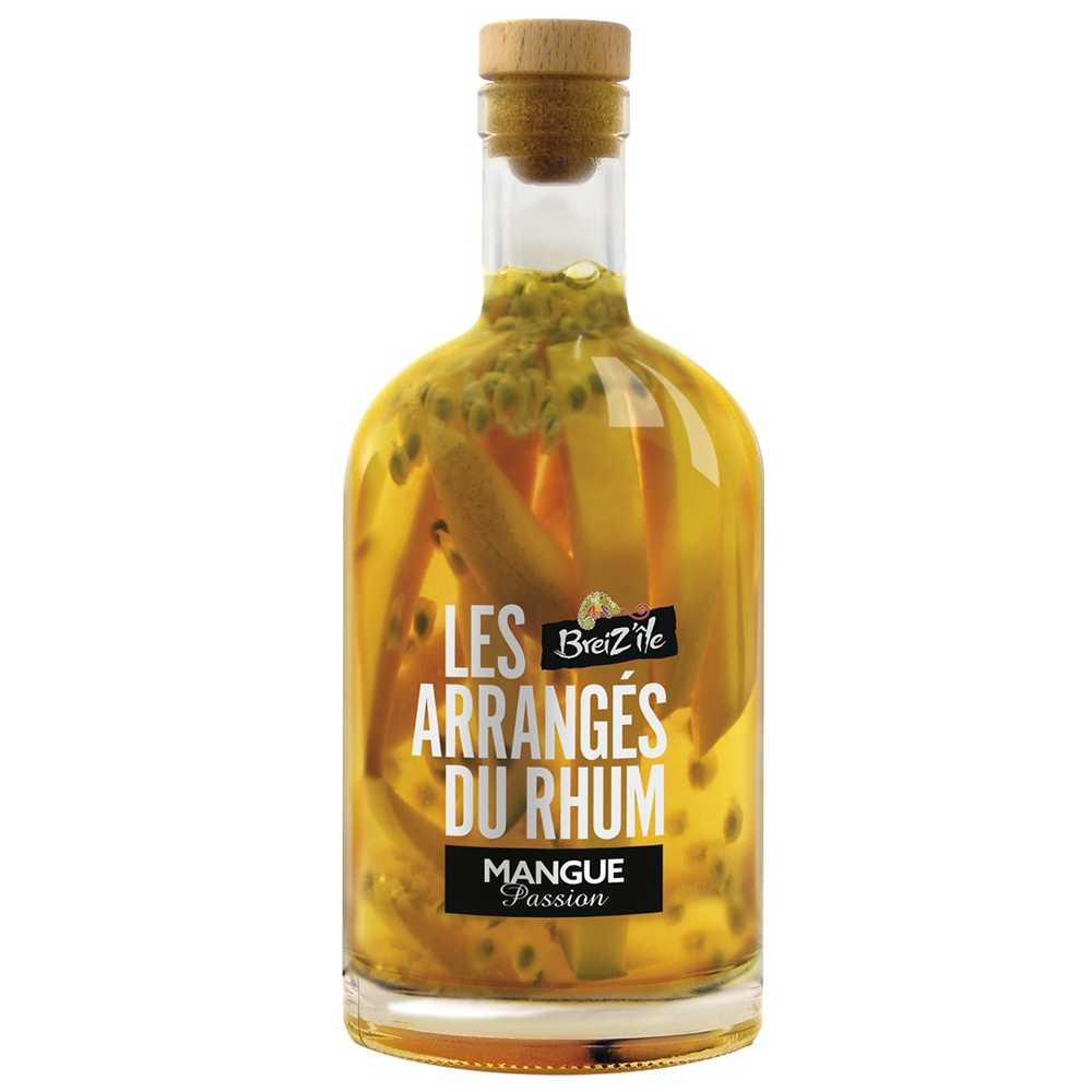 Breiz’Île Les Arrangés du Rhum Mangue passion est à la fois sucré et acidulé. La mangue provient du Brésil et le fruit de la passion de Colombie.