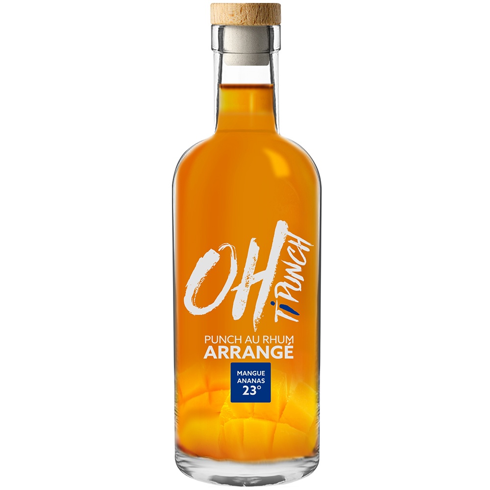 Oh Ti Punch Mangue Ananas c'est la douceur de la mangue et la fraicheur de l’ananas, le tout titrant à 23° d'alcool.