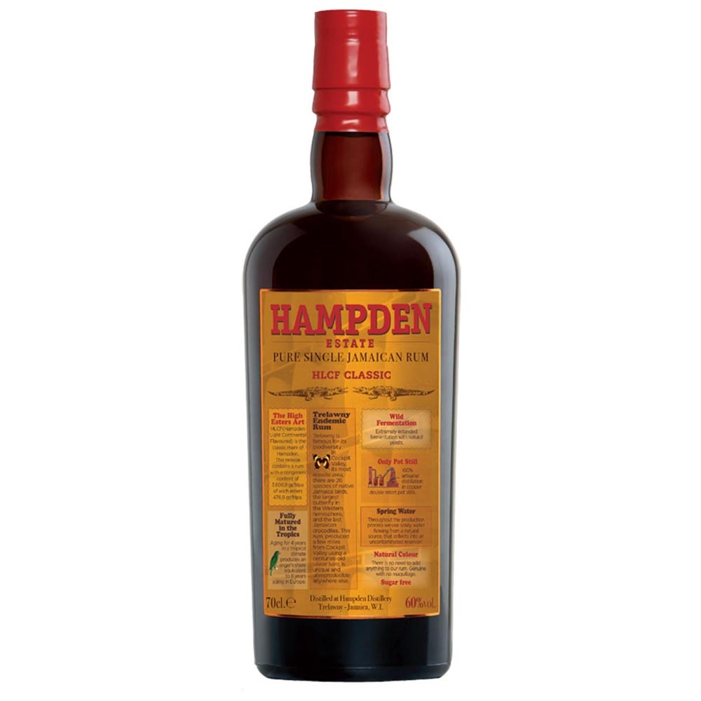 Hampden HLCF Classic Overproof est un rum jamaïcain unique et exceptionnel. Il présente un taux d’esters compris entre 400 et 600 gr/hLAP correspondant donc à un HCLF (pour Hampden Light Continental Flavoured). Cela désigne un taux d’esters historique pour cette distillerie.