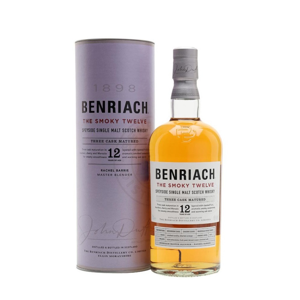 Ce whisky écossais de la région de Speyside Benriach 12 ans The Smoky Twelve est élaboré à partir d'un assemblage de whiskies vieillis 12 ans dans 3 types de fûts : Ex-fûts de bourbon, ex-fûts de Xérès et ex-fûts de Marsala.