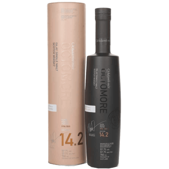 Octomore 14.2 est un single malt d'Islay très tourbé (128.9 ppm) de la distillerie Bruichladdich.