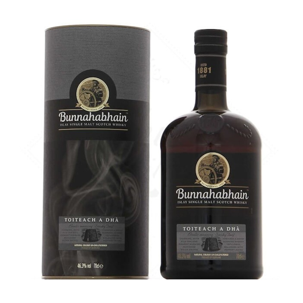 Bunnahabhain Toiteach Islay, ce whisky embrasse une proposition puissante: les bases d'une variation du célèbre Bunnahabhain dans lequel on a introduit un soupçon de fumée d'orge maltée lors du processus de distillation. Le caractère Islay est tout à fait distinctif du Bunnahabhain qui est connu pour son caractère doux. Toiteach prononcé "tactile chach" signifie "fumée" en gaélique qui reflète la contradiction apparente de ce single malt.