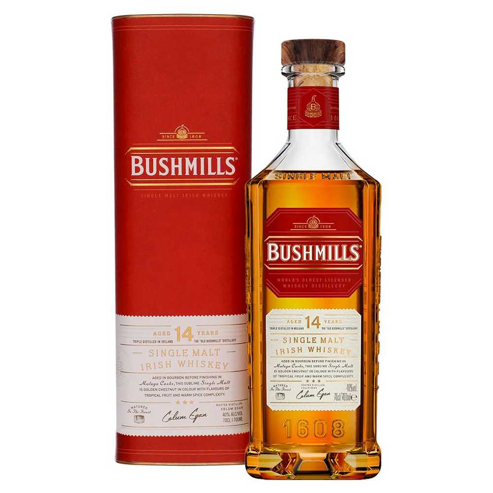 Le Bushmills est vieilli pendant 14 ans en fûts de Bourbon avec une finition de 12 mois en ex-fûts de Malaga : ce qui lui apporte une intensité fruitée et florale.