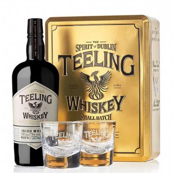 Teeling small batch coffret + 2 verres irish whisky + tin box gold 70cl / 46 %