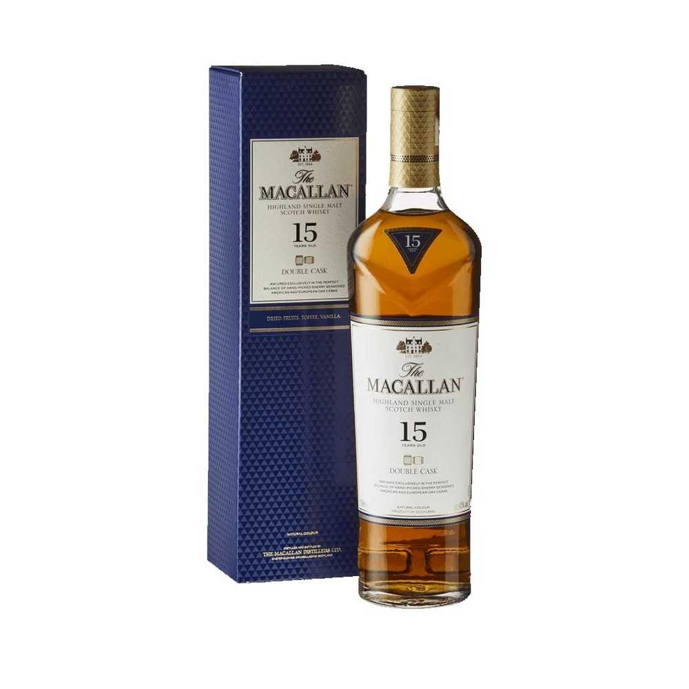 The Macallan 15 ans double cask est un single malt de Speyside ayant bénéficié d'un double vieillissement : en fûts de chêne américain ayant contenu du sherry oloroso sec et en fûts de chêne européen.